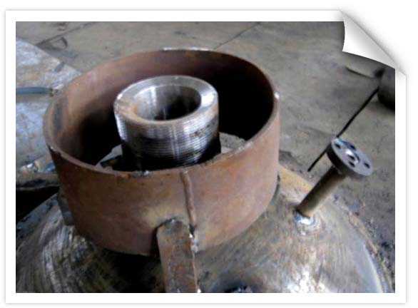 我公司生產(chǎn)的設(shè)備有很多封頭的頂部都焊有加工好帶螺紋的接管,因螺紋凸出在外,在生產(chǎn)中,稍不注意,就會把螺紋碰壞,把接管碰彎,造成報廢,而導致返工。如何保護接管和螺紋,已成為生產(chǎn)中的一道工序,不銹鋼分廠要求職工在生產(chǎn)中嚴格按照生產(chǎn)紀律的有關(guān)規(guī)定進行生產(chǎn),在焊有螺紋接管或焊有接管的部位,外加點焊一個凸圈,高于接管,加以保護,這樣以來,既保障了生產(chǎn)進度,也確保了產(chǎn)品質(zhì)量,取得了一舉兩得的好效果。
