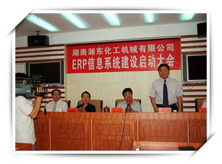 2007-06-29 為有效促進(jìn)企業(yè)管理的現(xiàn)代化、科學(xué)化,進(jìn)一步提升公司的綜合競爭力,湖南湘東化工機(jī)械有限公司于去年啟動了ERP系統(tǒng)的前期準(zhǔn)備工作,今天上午,根據(jù)ERP項(xiàng)目的進(jìn)展情況,正式啟動ERP信息系統(tǒng)建設(shè)。 ERP(企業(yè)資源規(guī)劃)是一種企業(yè)全新管理理念和管理工具,強(qiáng)調(diào)對企業(yè)的內(nèi)部甚至外部的資源進(jìn)行優(yōu)化配置,提高利用效率。此次我公司斥資300多萬,首期投資150萬元,進(jìn)行信息化建設(shè),依照“整體規(guī)劃,分布實(shí)施,重點(diǎn)突破,效益驅(qū)動”的原則,分階段、按步驟地實(shí)施財務(wù)、物流、人力資源、生產(chǎn)管理、物料需求計(jì)劃等核心模塊建設(shè),對企業(yè)管理進(jìn)行流程梳理,促進(jìn)公司經(jīng)濟(jì)效益的最大化。圖為和佳軟件公司陳佳總經(jīng)理不遠(yuǎn)千里從北京總部蒞臨我公司出席啟動儀式。