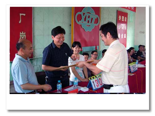 現(xiàn)場觀眾積極參與答題的熱鬧場面  生產(chǎn)副總經(jīng)理姜衡陽為冠軍組頒獎(jiǎng)