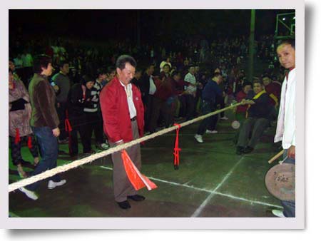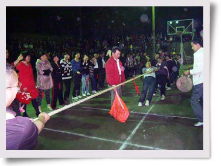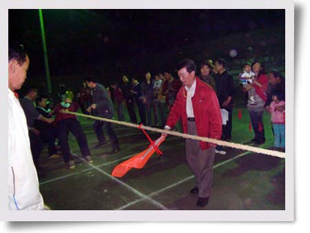 當(dāng)天晚上7點(diǎn),觀眾來(lái)到湘東化機(jī)生活區(qū)的燈光藍(lán)球場(chǎng)時(shí),只見(jiàn)黑壓壓一片人群將賽場(chǎng)圍得水泄不通,哇,好熱鬧,“加油、加油、加油。。。。。。”,拉拉隊(duì)的助威聲震天響,整個(gè)比賽氣氛一再被推向高潮。8個(gè)隊(duì)120名職工在比賽場(chǎng)上進(jìn)行激烈的角逐,隊(duì)員們的心就像那根拔河繩凝聚成一根繩,在領(lǐng)隊(duì)的精心組織下,在拉拉隊(duì)的助陣下,勁往一處使。經(jīng)過(guò)2個(gè)小時(shí)的初賽和決賽,汽輪機(jī)分會(huì)和機(jī)關(guān)分會(huì)分別奪取了冠、亞軍。