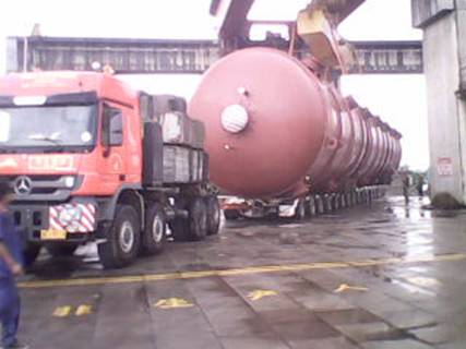 日,在湖南衡陽白沙洲千噸級碼頭,由我公司制造完工的上海金山石化項目丙烯塔順利發(fā)貨。該設備共兩臺,每臺總長度為
