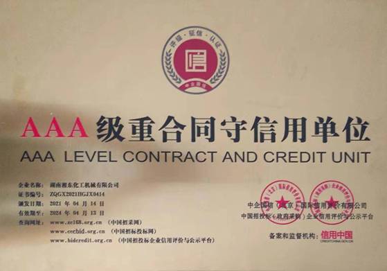 近日,我公司收到中企國信(北京)國際信用評(píng)價(jià)有限公司和中國招投標(biāo)(政府采購)企業(yè)信用評(píng)價(jià)與公示平臺(tái)發(fā)來的“AAA級(jí)重合同守信譽(yù)單位”證書和銅牌,這是對我公司多年來遵循“以顧客為中心”的質(zhì)量方針,確保產(chǎn)品交貨期的充分肯定。