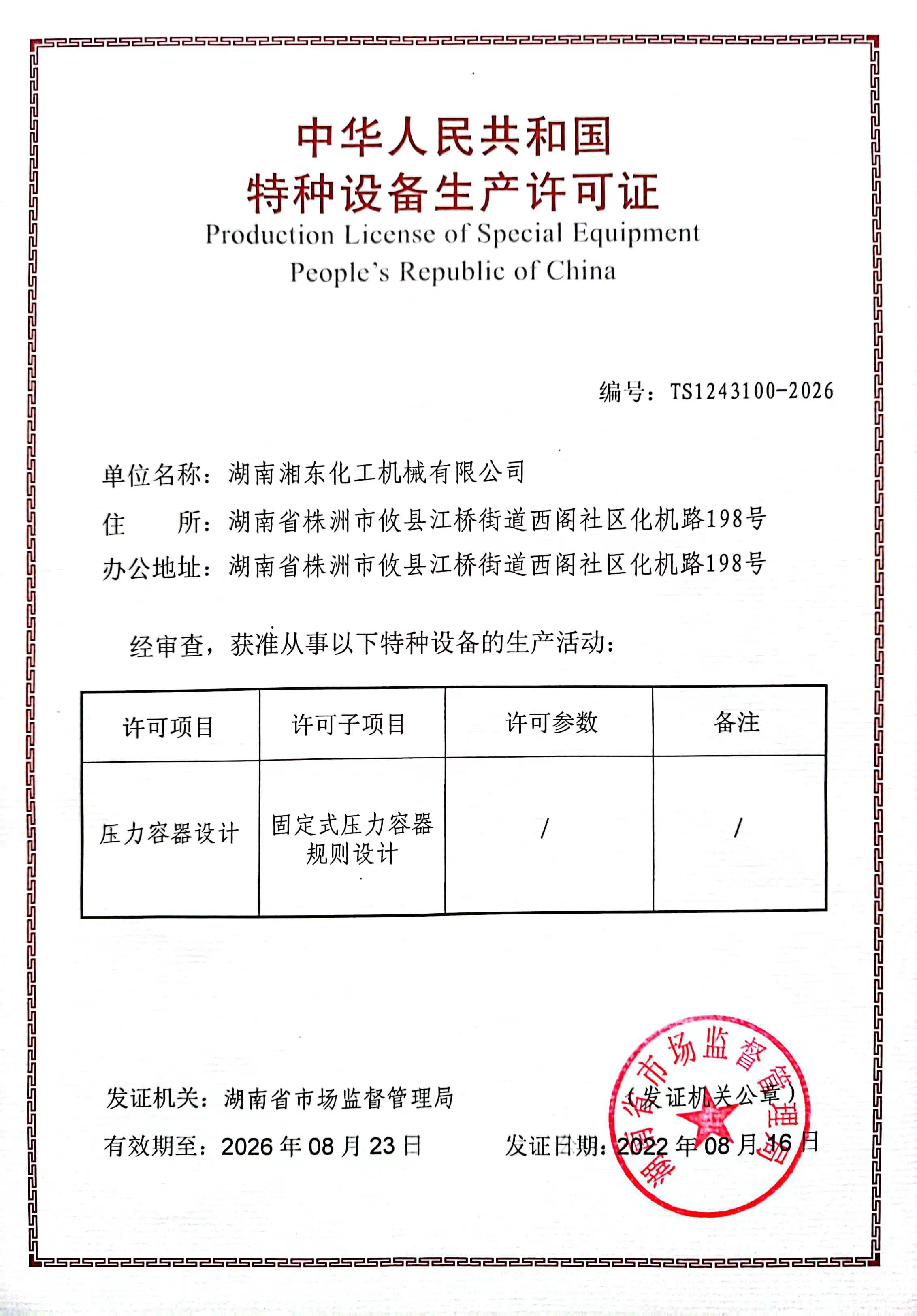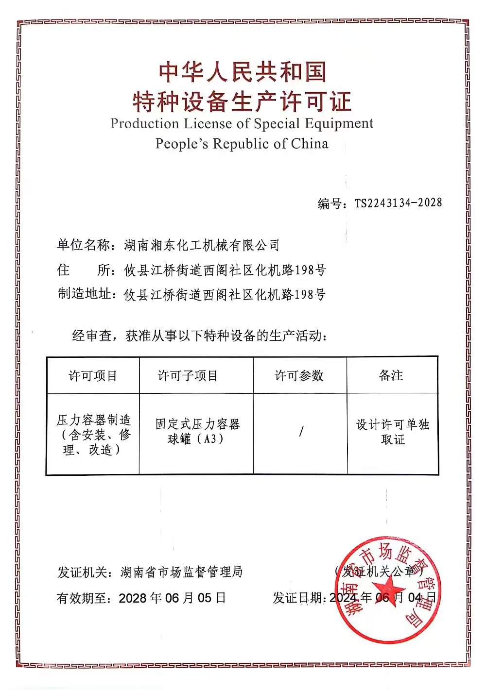 特種設(shè)備生產(chǎn)許可證(A3)