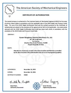 ASME 證書(shū)