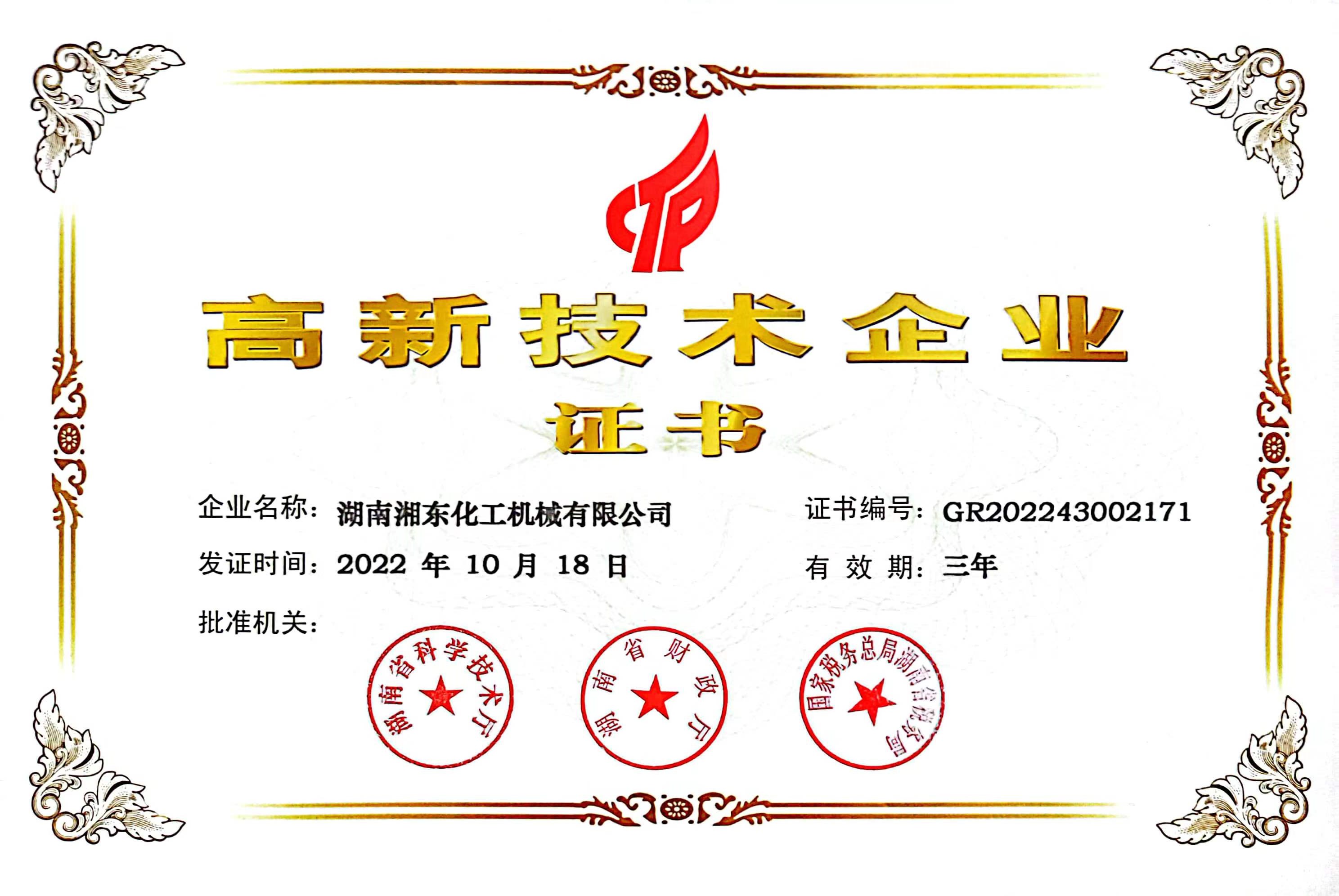 湖南省高新技術(shù)企業(yè)證書(shū)