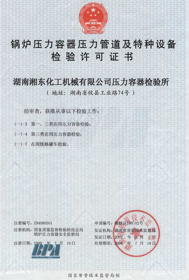 壓力容器檢驗(yàn)許可證